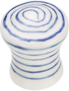 Gałka meblowa jest ważnym elementem szafek, pozwalającym na wygodne uchylanie ich drzwiczek lub wysuwanie szuflad. Poza funkcjonalnością wyróżnia się także dekoracyjnym wyglądem – na białym tle widnieje wzór niebieskiej linii, ożywiający zarówno samą gałkę, jak i front, na którym jest zamocowana. Element powstał z ceramiki.