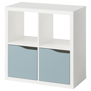 KALLAX Regał, z 2 drzwi biały/jasny szaroniebieski fala,
