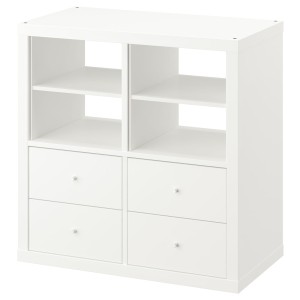 KALLAX Regał, z 4 szufladami/z 2 wkładami z półką biały,
