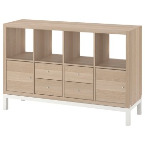 KALLAX Regał z ramą nośną, z 2 drzwi/4 szufladami/imitacja dębu bejcowanego na biało,