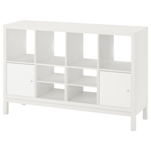 KALLAX Regał z ramą nośną, z 2 drzwi/z 2 wkładami z półką biały,