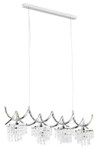 Prezentowana lampa wisząca z kolekcji Helisa to doskonały wybór dla osób ceniących sobie elegancję i szyk a jednocześnie szukających delikatności i preferujących subtelne wzornictwo. Zbudowana z 4 małych kryształowych kloszy zawieszonych na lekkich, skręconych z metalu prętach, tworzy gustowną i nieprzytłaczającą ozdobę wybranego wnętrza.
