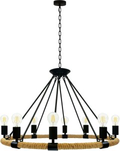 [{"name": "Typ produktu", "value": "Lampa sufitowa wisząca"}, {"name": "Seria", "value": "Rope"}, {"name": "Materiał", "value": "Sznurek konopny i metal"}, {"name": "Kolor", "value": "Czarny, brązowy"}, {"name": "Typ żarówki", "value": "Klasyczna"}, {"name": "Żarówka w zestawie", "value": "Brak żarówek w zestawie"}, {"name": "Liczba źródeł światła", "value": "8"}, {"name": "Mocowanie gwintu żarówki", "value": "Oprawka Edisona (E27)"}, {"name": "Maksymalna moc żarówki", "value": "60W"}, {"name": "Sposób montażu", "value": "Wiszący lub natynkowy"}, {"name": "Poziom ochrony", "value": "Brak klasyfikacji IP"}, {"name": "Gwarancja producenta", "value": "2 lata"}]