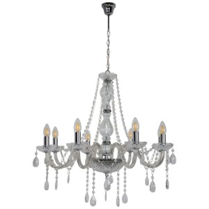 Lampa wisząca GoodHome Gacruz chrom charakteryzuje się eleganckim wzornictwem. Model sprawdzi się we wnętrzach urządzonych w stylu klasycznym oraz glamour. Lampę zawiesisz w salonie czy gabinecie, a duża liczba punktów świetlnych sprawi, że pomieszczenie będzie precyzyjnie oświetlone. Model wykonany z tworzywa i szkła jest odporny na uszkodzenia i łatwy do wyczyszczenia.
