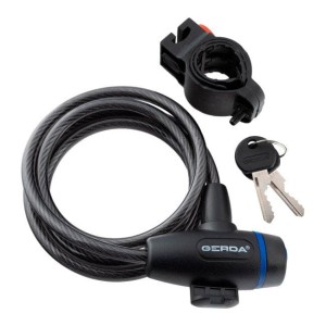 Linka zabezpieczająca Gerda z zamkiem zwiększy bezpieczeństwo Twojego roweru. Wykonana z plecionej stalowej linki, stanowi wytrzymałe zabezpieczenie dla pojazdu. Przypięcie wyposażone jest w solidny zamek otwierany kluczem. Produkt posiada także plastikową osłonę. Pokrycie linki wykonane jest z PVC. Linką Gerda bez trudu zabezpieczysz także wózek oraz narzędzia.