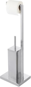 Stojak na papier toaletowy GoodHome Kotra spodoba Ci się, jeśli lubisz symetrię i regularne bryły. Nie zajmie dużo miejsca w Twojej łazience, a będzie pełnić kilka funkcji. Praktyczny podajnik papieru umieszczony został pośrodku konstrukcji, a wysokość, na której się znajduje, ułatwia korzystanie z niego. Drążek nośnika pomieści zapasowe rolki. Dzięki temu nie zaskoczy Cię nagły brak zapasów. Prostokątny pojemnik na szczotkę stabilizuje strukturę. Całość zajmie taką samą przestrzeń, jakiej potrzebujesz na ustawienie samodzielnego pojemnika. Stojak na papier toaletowy GoodHome Kotra jest w kolorze polerowanego srebra. Dlatego świetnie będzie wyglądać w nowoczesnej aranżacji. Akcesoria łazienkowe z serii Kotra o podobnej stylistyce znajdziesz w ofercie naszych sklepów.
