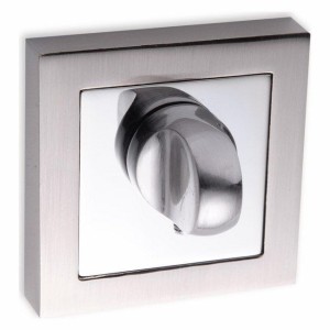 Kwadratowy szyld w kolorze satyna chrom sprawdzi się jako wyposażenie wszystkich drzwi łazienkowych. Produkt posiada pokrętło, które uruchamia zamek, dzięki czemu będziesz mógł czuć się komfortowo w łazience lub toalecie. Szyld cechuje się eleganckim wykończeniem oraz uniwersalną tonacją satyna chrom. Dzięki temu sprawdzi się nie tylko w pomieszczeniach domowych, ale także we wnętrzach użyteczności publicznej. Nowoczesna forma została podkreślona przez geometryczny kształt oraz metaliczną barwę. Element po zamocowaniu estetycznie zamaskuje miejsce montażu, sprawiając, że drzwi będą się prezentowały w estetyczny sposób. Dzięki wykorzystaniu w procesie produkcji trwałego materiału element posłuży Ci przez długi czas.