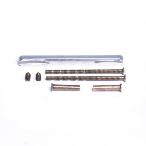Zestaw montażowy Kuchinox pozwala na wygodne zamontowanie w drzwiach klamki na rozetce lub szyldzie. Komplet zawiera wszystkie potrzebne elementy długie śruby do montażu szyldu w drzwiach oraz trzpień, który zamocujesz się w środku zamka. Klamkę łatwo dokręcisz do drzwi za pomocą dołączonego do kompletu klucza imbusowego. W zestawie znajduje się też śruba imbusowa do zamocowania z boku klamki. Produkty zostały wykonanie ze stali, która gwarantuje ich długoletnią trwałość i niezawodność. Kolor elementów montażowych z kompletu jest perfekcyjnie dopasowany do akcesoriów wykończeniowych w barwie patyny. Elegancki odcień pasuje do stylu vintage i doskonale współgra z tradycyjnymi drzwiami w kolorze ciemnego lub jasnego drewna.